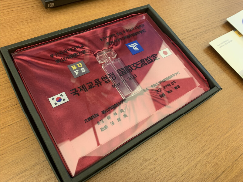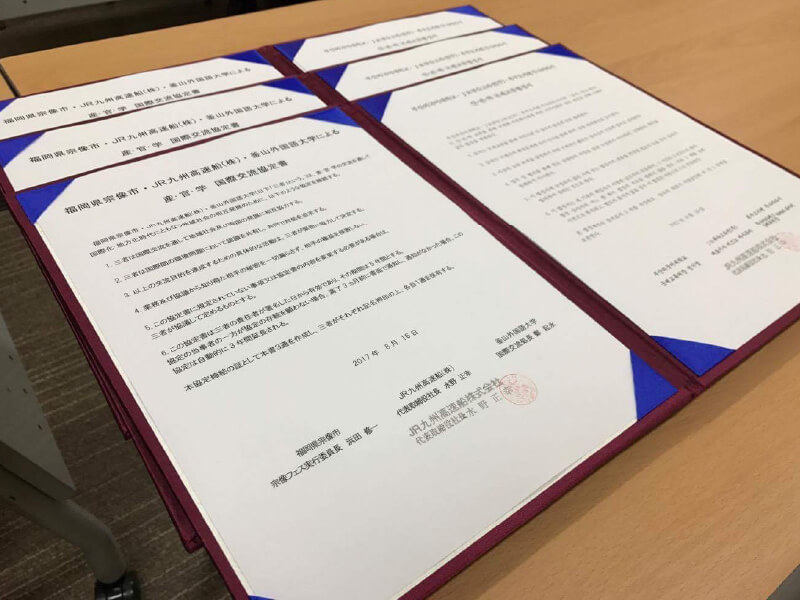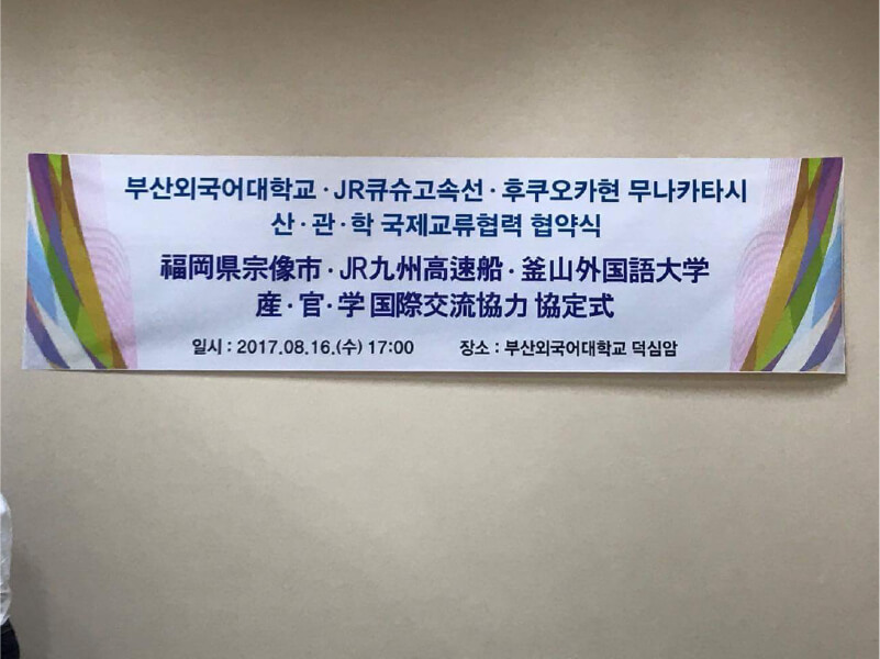 MFC、JR九州高速船株式会社、釜山外国語大学は、3者が相互に協力しあい国際交流事業を行う協定書を締結し、それぞれのアイディアを結集して事業を行っています。
