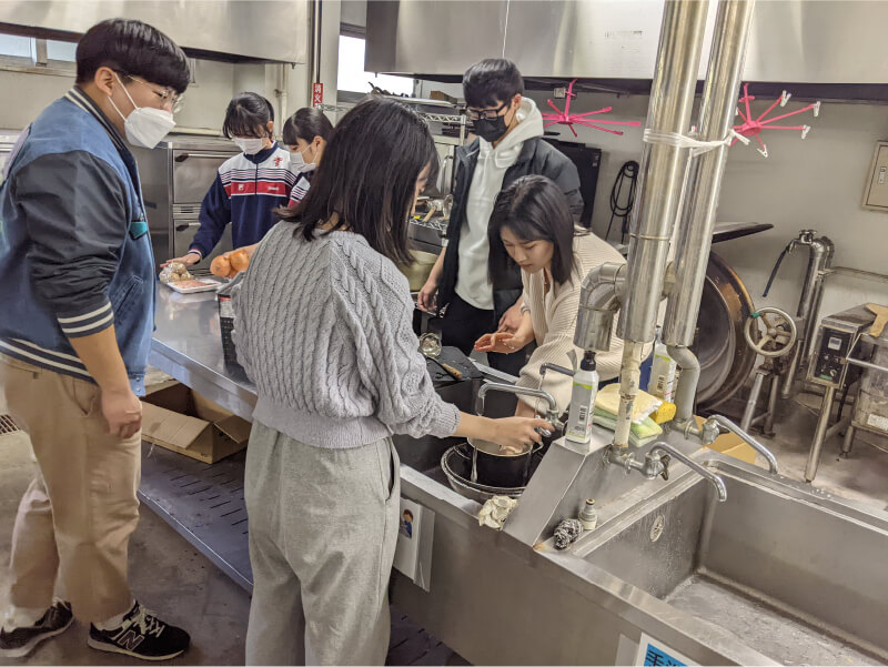 高校でのウェルカムレセプション、宗像の海岸清掃、そして、日韓の学生で混合チーム作って、チーム内で食材の買い物から料理、後片付けまで行う「カレーチャレンジ企画」多くの笑顔を友情が芽生えました。