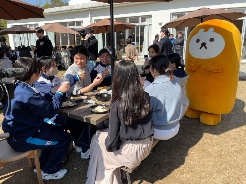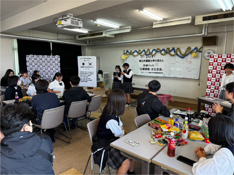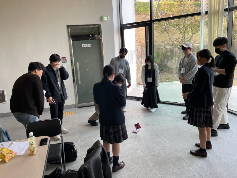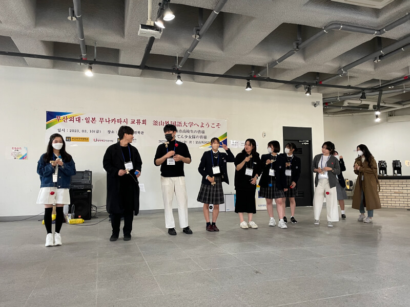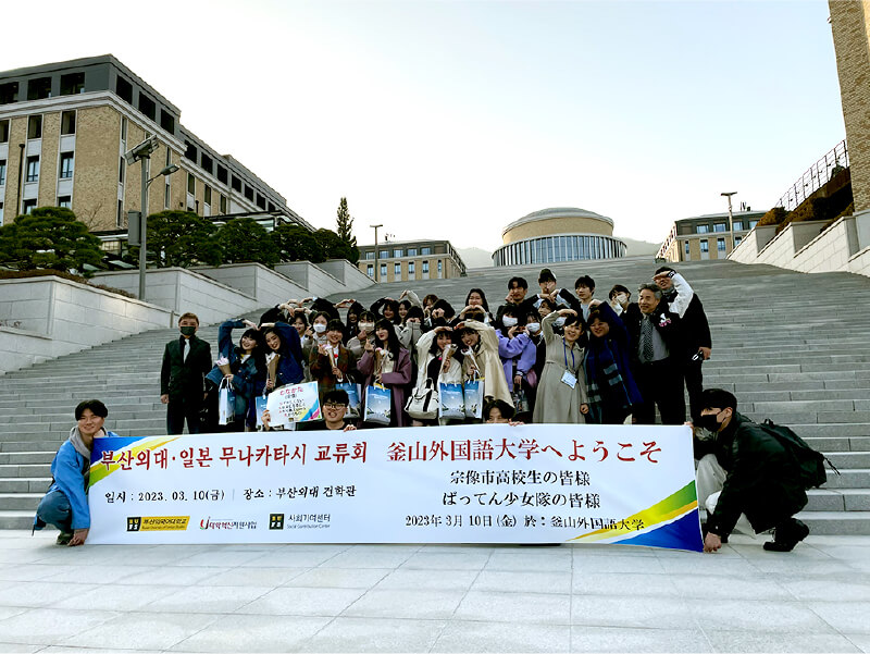 釜山外国語大学の大学生50名が東海大学付属福岡高校の高校生と宗像市内で交流事業を行いました。