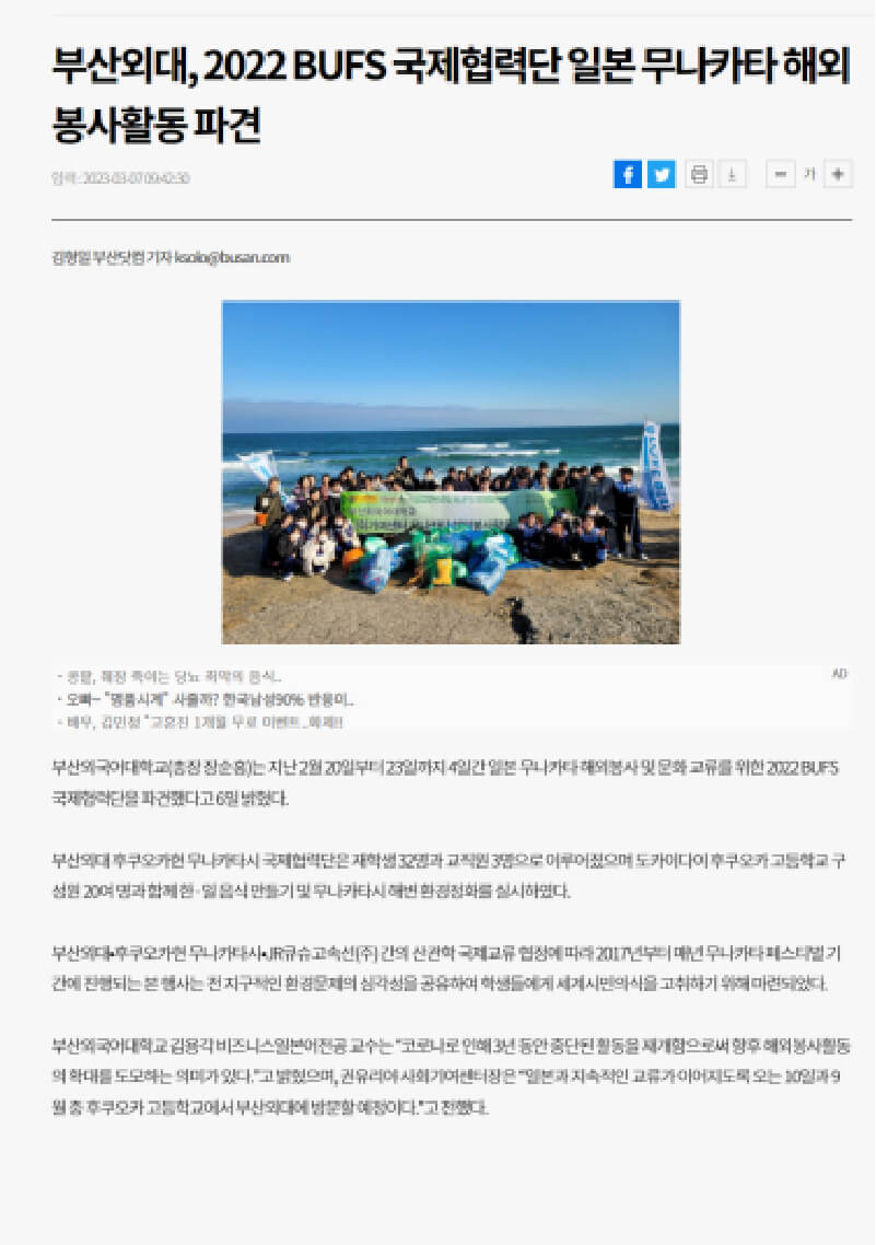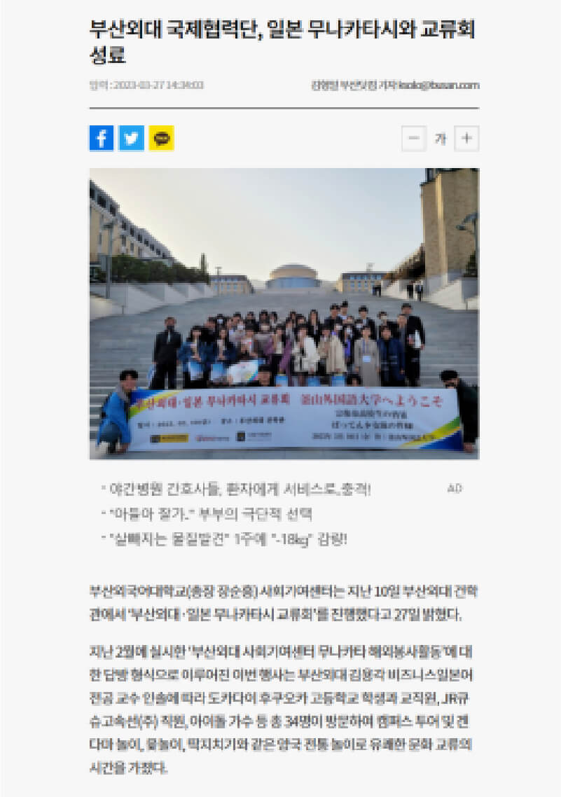 東海大学付属福岡高校の学生12名と「ばってん少女隊」が釜山外国語大学にクイーンビートルで行く特別交流事業。