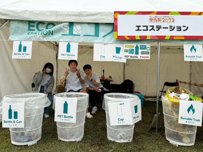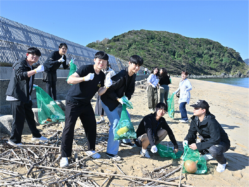 宗像の海岸清掃、会場のエコステーションの運営を日韓の学生共同で分別回収を行いました。