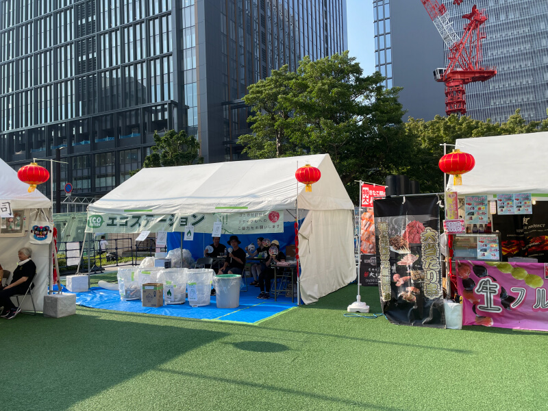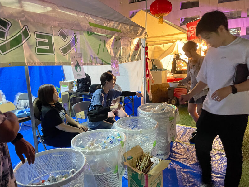 福岡市役所西側ふれあい広場にて開催されたチャイナフェスティバル会場でもエコステーションを運営。 ごみの分別を行う。