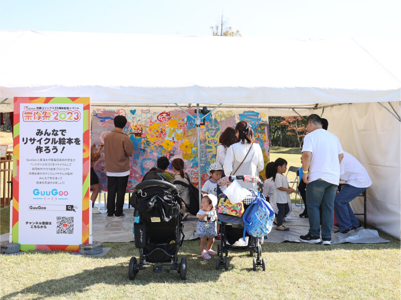 来場者に、来年のグッズ製作の趣旨を告知しエコステーションで全てのペットボトルを回収