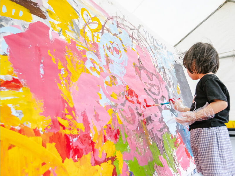 八つの構成資産からなる文化遺産の「『神宿る島』宗像・沖ノ島と関連遺産群」は、それを取り巻く海洋環境を守り次世代に継承する事が我々の担いだと考えています。MFCはこれまでも「宗像フェス」と環境問題への取り組みを連携し成長してきました。世界遺産の歴史的価値や海の環境保全活動、そして海を好きになってほしいという活動の趣旨に賛同頂いた、アーティスト、地域の子供達と共に継続的な海岸清掃を行っています。
