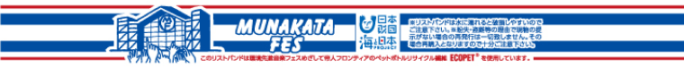 オフィシャルスポンサーの宗像フェスのグッズ制作には、継続的に海岸清掃で回収される、大量の海洋プラスチックと宗像フェス会場から出るプラスチック容器をリサイクルして利用しています。 スタッフのTシャツ、来場者全員が手にするリストバンド、会場に敷かれるレジャーシートなど、コストより環境を考え他の音楽フェスより、いち早く導入するなど環境先進イベントを常に目指しています。